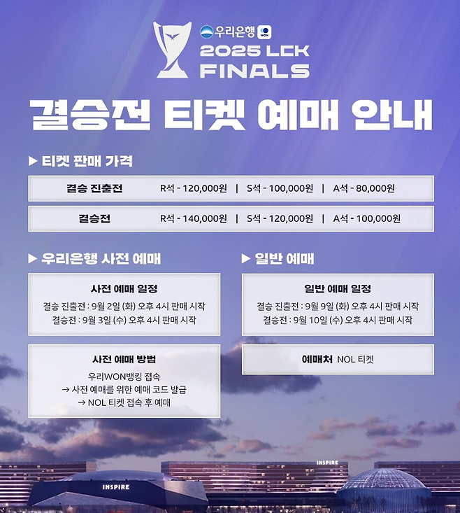 2025년 LCK 결승전이 오는 9월, 인천 인스파이어 아레나에서 개최됩니다. 매년 e스포츠 팬들의 이목을 집중시키는 이 이벤트는 올해도 치열한 티켓팅 경쟁이 예상되고 있습니다. 특히 올해는 결승 진출전과 본결승이 이틀에 걸쳐 열리며, 예매 절차와 관람 방식에도 세부적인 변화가 있어 사전 정보 확인이 필수입니다.