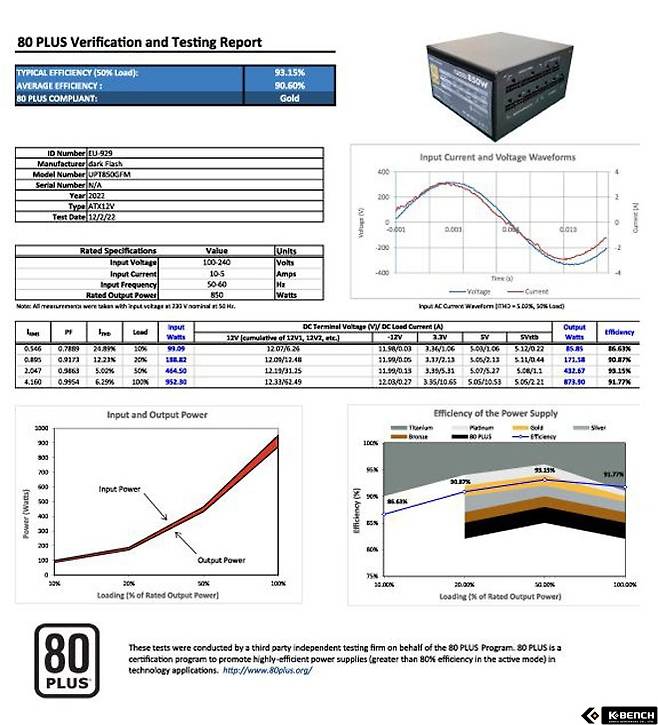 80PLUS 인증 중에서도 골드 등급은 정격의 평균 90% 효율을 꾸준하게 내줄 수 있어야 얻게되는 등급이니 만큼 높은 신뢰도 인증과 성능도 확인된 셈이 아닐까 싶다.
