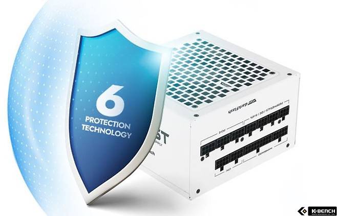 darkFlash UPMOST 850W 화이트 제품은 전류와 전압, 외부 충격등에 의해서 PC에 데미지가 가지 않도록 하는 6중 보호 회로 기술이 적용된 모델로 확인되고 있다.