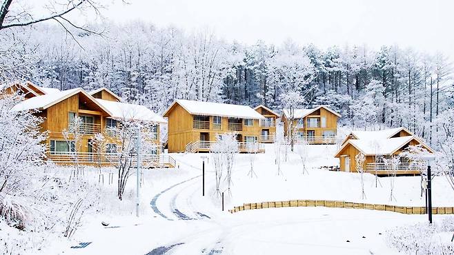 잣나무, 낙엽송, 자작나무가 울창한 침엽수림을 이루어 리조트 전체를 호위하듯 둘러싸고 있죠. 2007년 문을 연 이곳은 산림청 녹색자금으로 조성된 공공 시설로, 산림치유와 교육을 결합한 독보적인 프로그램을 운영합니다.
