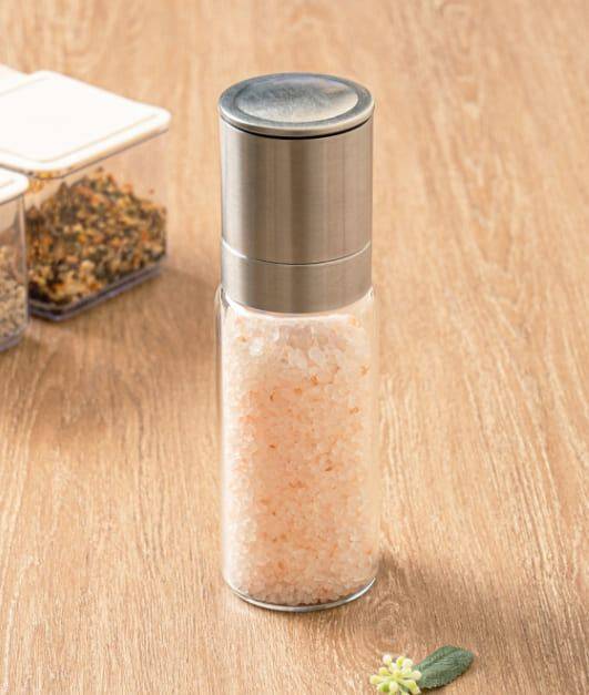 그 다음은 주방용품 코너 입니다. 다이소의 숨은 꿀템 바로 '내열유리 그라인더'인데요. 소금이나 통후추를 넣고 돌려주면 원하는 입자 굵기로 향신료를 갈 수 있수 있는 제품입니다.