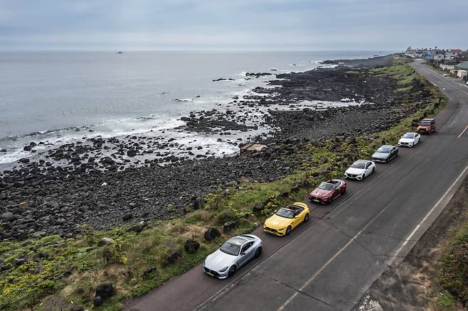 실제 벤츠코리아는 이 그림을 완성시켰다. 지난달 24일 벤츠코리아는 제주 한라산 자락에 위치한 호텔에서 '드림 라이드 인 제주(Dream Ride in Jeju)'를 개최하고, 고객들에게 평생 기억에 남을 드라이브 코스를 제공했다. 투입된 차량은 플러그인 하이브리드 세단 'AMG E 53 하이브리드 4MATIC+'와 오픈톱 로드스터 '더 뉴 SL 43'이다.