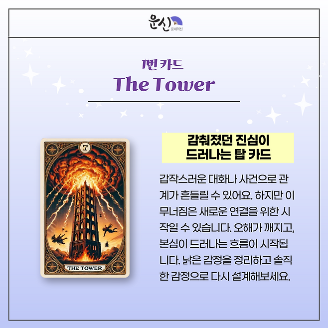 이 카드는 감정을 정리하라는 경고가 아니라, ‘솔직해질 기회’가 찾아왔다는 메시지예요. 두려움보다는, 진심이 더 멀리 갑니다.