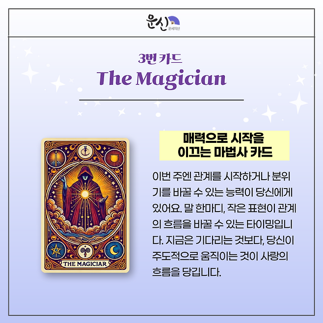 이 카드는 말합니다. “사랑은 저절로 오기도 하지만, 만들어낼 수도 있다.” 지금의 당신은 그 ‘사랑을 이끄는 힘’을 가졌습니다.