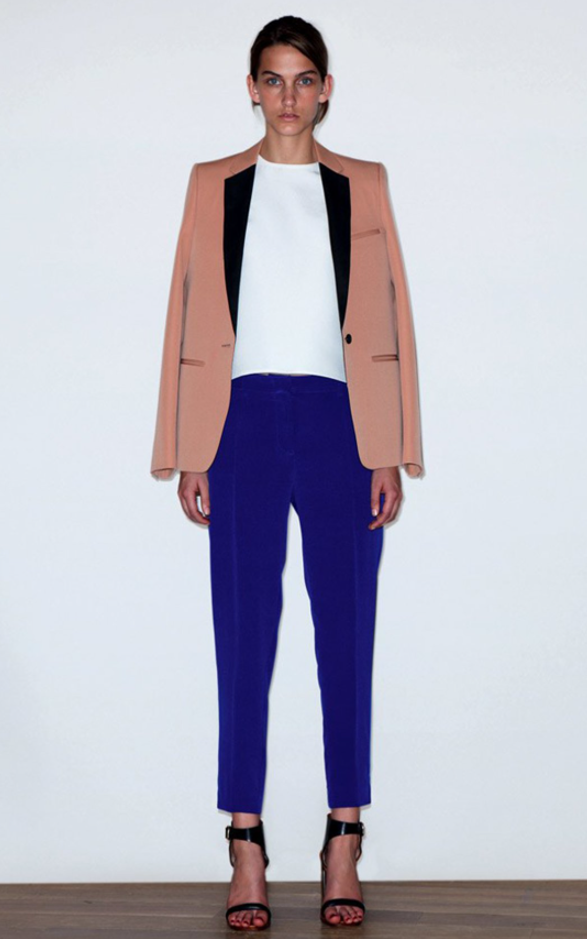베이지 컬러의 턱시도 자켓,