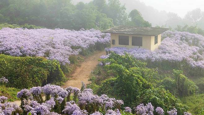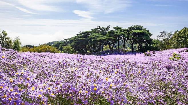 무려 3,000평 규모의 꽃밭에 연보라색 개미취가 흐드러지게 피어나면서, 이곳은 전국에서 모여든 여행자와 사진가들로 활기가 넘치는 가을 명소가 됩니다.