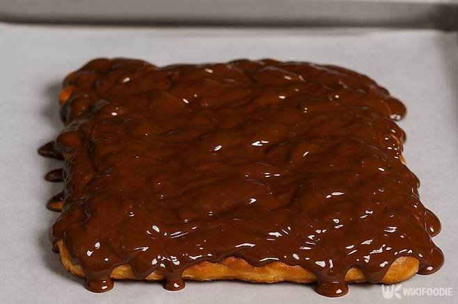 6. 녹인 초콜릿을 바나나 위에 고르게 부어준다