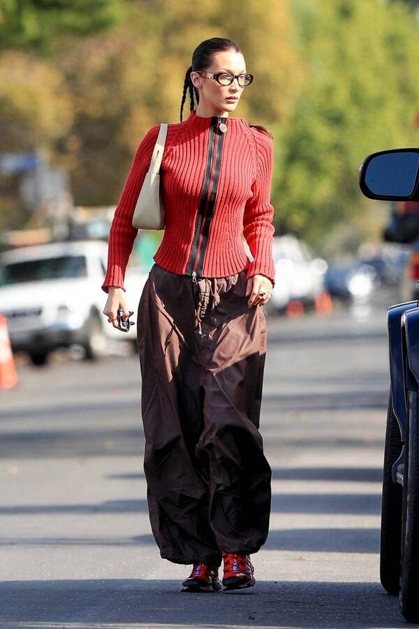 벨라 하디드가 입은 체크 스커트에 스포티한 상의 조합도 근사하고, 2023년부터 꾸준하게 SNS에서 인기를 끌고 있는 조츠Jorts(데님 팬츠의 일종)를 매치해 주는 것 또한 스포티룩으로 개성이 돋보일 수 있는 스타일링 기법이다.