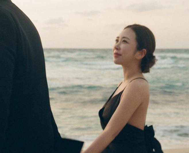 김성은은 또한 자신의 웨딩 화보 중 한 장을 공개했는데, 사진에서는 바다를 배경으로 검정색 드레스를 입은 김성은이 예비 신랑을 바라보는 모습이 담겼다.
