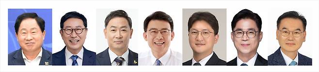 | ▲ 남양주시장 선거가 더불어민주당 내부 경선을 중심으로 본격적인 정책 경쟁 국면에 들어섰다. 교통난과 베드타운 구조라는 고질적 문제를 어떻게 풀어낼 것인지가 핵심 쟁점으로 떠오른 가운데, 후보들은 저마다 해법을 내놓으며 차별화에 나서고 있다. 왼쪽부터 국힘 주광덕 현직시장, 민주당 김한정, 이원호, 최현덕, 김지훈, 백주선, 윤용수 예비후보 |