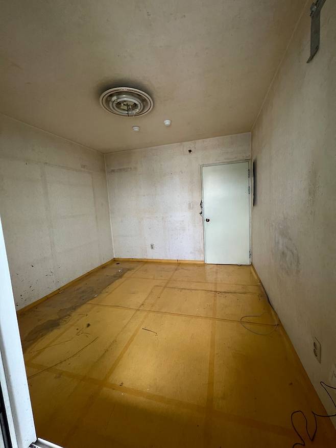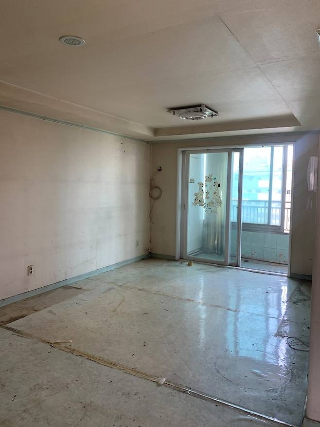 곰팡이로 인해 벽지와 장판의 상태가 매우 좋지 않아서 충격을 받았던 기억이 나네요. 창문 쪽 벽면은 복도와 맞닿아 있는데, 저희 아파트는 복도에 따로 샷시가 설치되어 있지 않아서 단열 공사도 새로 진행했어요.
