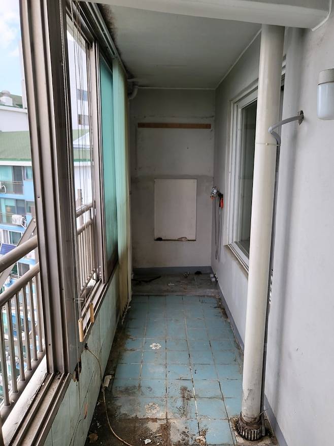 베란다에 창고가 있었지만 전부 다 철거하고 확장했어요. 그리고 오래된 알루미늄 샷시(새시)도 전부 교체해 주었는데, 샷시 공사가 비용이 많이 들더라구요.