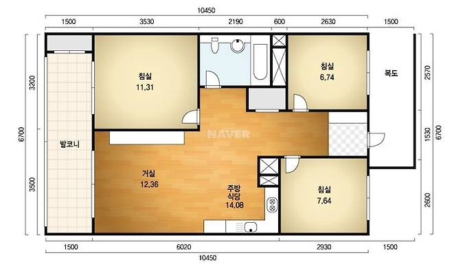 베란다가 거실부터 침실까지 길게 이어져 있었는데, 주방에 식탁 놓을 공간이 충분하지 않아서 거실 발코니는 확장을 진행했고, 침실 쪽 발코니는 세탁실로 이용하기 위해 살려두었어요. 또한 방이 3개인 점은 좋았지만, 큰 방을 제외한 나머지 2개의 방이 굉장히 작고, 거실과 주방의 경계가 없이 이어진 구조여서 레이아웃을 결정하는 것이 쉽지 않았어요.