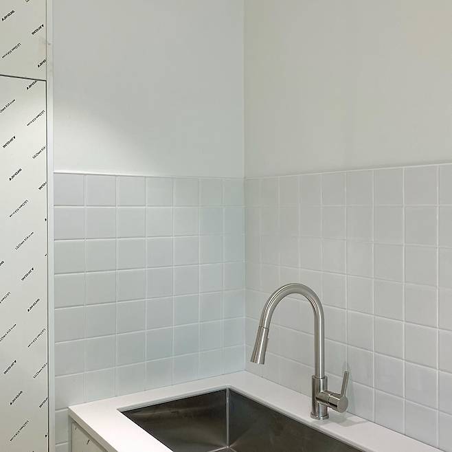 타일은 아일랜드 위쪽으로 6줄 붙이기로 했었는데, 마감 전에 생각했던 것보다 낮아 보여서 한 줄 더 붙이는 걸로 급하게 요청드렸어요. 죄송했지만 말씀드리길 잘했다고 생각해요.