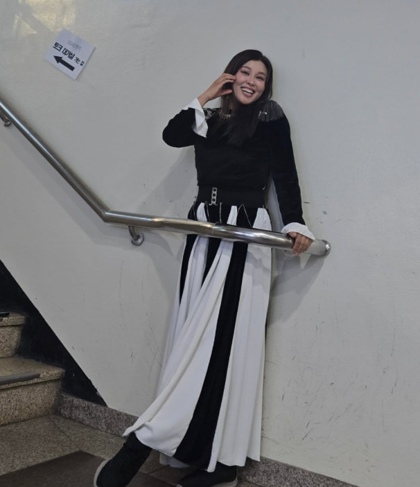 홍지민은 KBS2 '불후의 명곡' 녹화를 위해 KBS를 찾았죠. 그런데 '뮤직뱅크 계단샷'을 찍어 눈길을 끌었는데요!