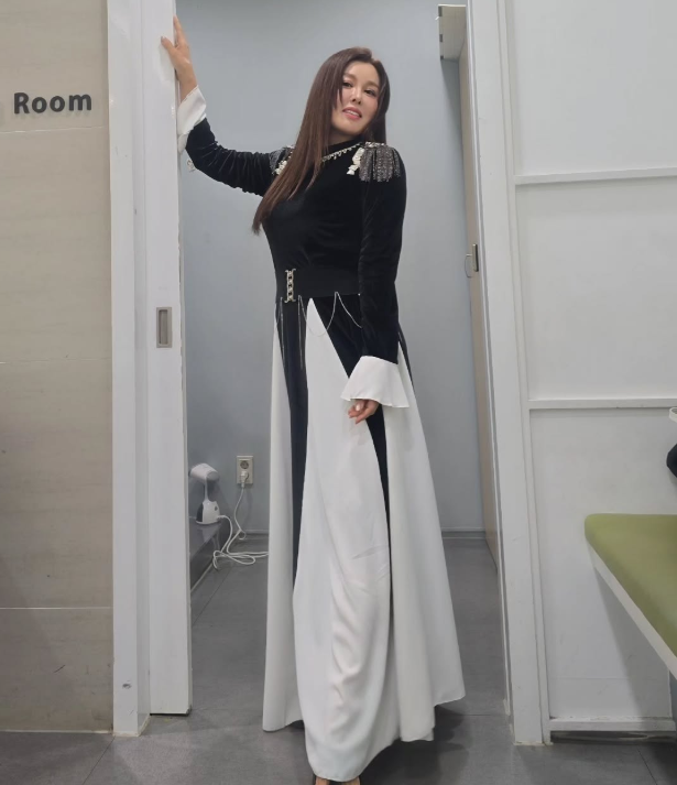 홍지민 님이 선택한 롱원피스는 블랙과 화이트 컬러로 이루어진 클래식한 색 조합이 돋보였어요. 이 두 컬러는 언제나 세련된 분위기를 자아내며, 원피스의 긴 길이는 우아함을 더욱 강조했죠.