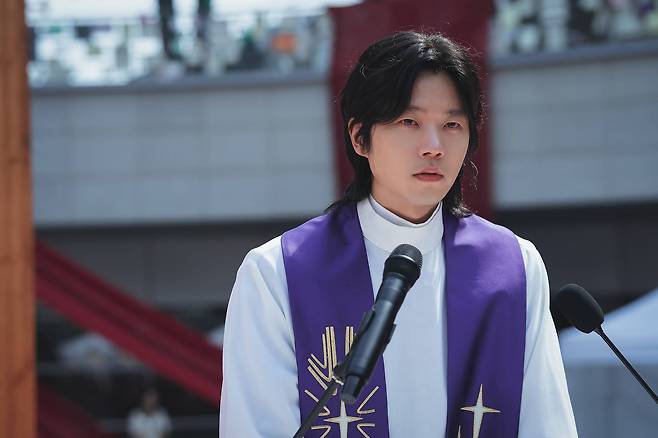사라진 주임신부를 대신해 신도들을 보살피는 보좌신부 ‘성재’(전성우)는 사제복을 입고 강단 앞에 선 모습으로 각종 혼란스러운 상황에도 사람들의 감정을 먼저 생각하는 성격을 엿볼 수 있게 한다. 작품마다 개성 있는 캐릭터를 완성시킨 전성우는 사제로서 사람들을 위로하면서도, 스스로 무너지지 않으려고 노력하는 ‘성재’의 감정을 심층적으로 표현하며 존재감을 드러낼 전망이다.
