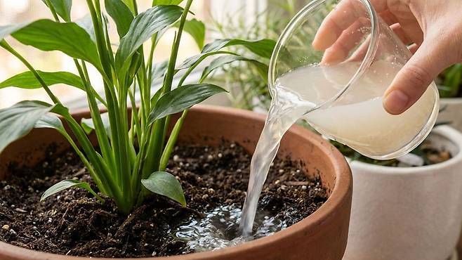 쌀뜨물에는 비타민 B군과 미네랄, 수용성 전분이 풍부해 흙속 유익한 미생물의 먹이가 된다. 미생물 활동이 활발해지면 토양 통기성이 좋아지고, 뿌리는 산소와 영양을 더 쉽게 흡수할 수 있다. 다만 첫 번째 쌀뜨물은 농도가 진하므로 두 번째 헹군 물을 사용하고, 맹물과 1:1로 희석해 주는 것이 안전하다. 일주일에 1~2회 정도가 적당하며, 여름철에는 부패가 빠르므로 바로 사용하는 것이 중요하다.