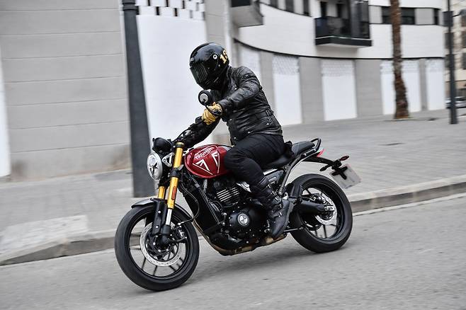 스피드400은 꽤나 진심으로 달리기 성능을 세팅한 것 같다. 스타일과 적당한 배기량이 주는 안정감이 이 바이크의 특징일 것이라 예상했는데 의외로 주행의 재미가 가장 좋았다. 본격적인 성능의 스포츠 네이키드와 비교해도 뒤처지지 않을 만큼 확실한 재미를 준다. 앞서 말했듯 스로틀반응도 민첩하니 항시 스포츠 모드라고 생각하면 된다. 어쩌면 겉은 신사, 속은 훌리건인 트라이엄프의 양면성을 엔트리 모델부터 느껴보라는 배려일지도 모르겠다.