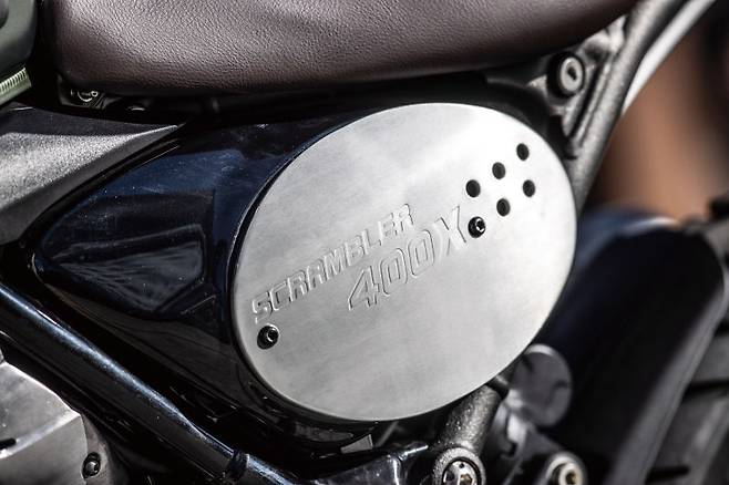 스크램블러 1200과 스크램블러900에서 이어지는 모델이다. 디자인은 스크램블러 특유의 요소들을 전반적으로 잘 녹여냈다. 헤드라이트 그릴, 오프로드 스타일의 핸드가드와 패드가 덧대어진 브레이스를 갖춘 넓은 핸들바, 고무를 제거해 그립을 높일 수 있는 오프로드 풋패그, 전용 브레이크 레버 등 스크램블러다운 면모를 충실하게 갖추고 있다. 스타일에서 아쉬운 점을 꼽자면 스크램블러 특유의 업스타일 머플러가 아니라는 점과 싱글시트가 아닌 분리형 시트라는 점 정도다. 그래도 배기는 듀얼팁 머플러로 시각적인 차별화를 만들고 있다. 전체적인 구성은 스피드400보다 풍성한데 그만큼 스피드400과의 가격 차이가 해외 가격 기준으로 약 100만원 가량 더 비싸다.