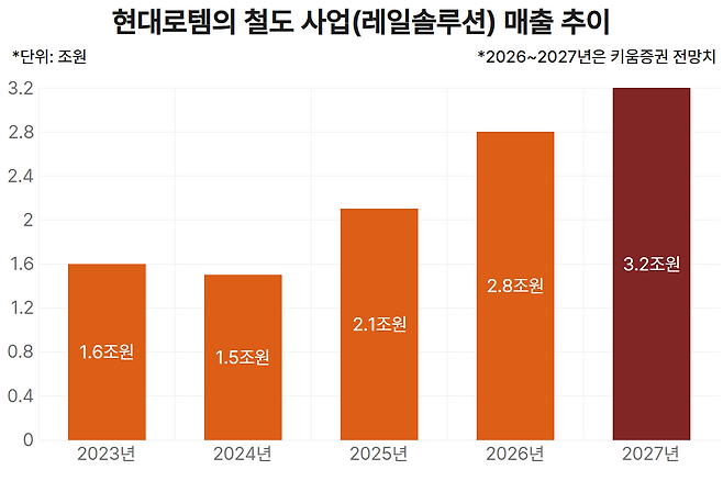 매출도 반등세에 들어섰다. 레일솔루션 부문 매출은 2020년부터 2024년까지 1조5000억원 수준에서 정체돼 있었지만, 지난해 39.7% 급증하며 처음으로 2조원을 넘어섰다. 키움증권은 올해 매출이 2조7818억원, 내년에는 3조2450억원까지 늘어날 것으로 전망했다.