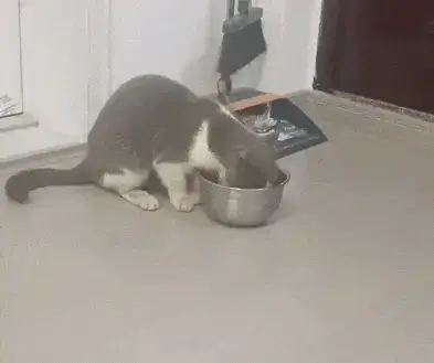 새로 온 고양이는 낯선 환경에도 자연스럽게 기존 고양이의 사료를 먹으며 금세 적응하는 모습을 보였습니다.