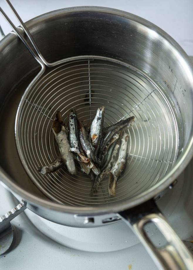 2. 멸치와 다시마를 넣어 5분간 끓여 멸치육수를 준비한다.
