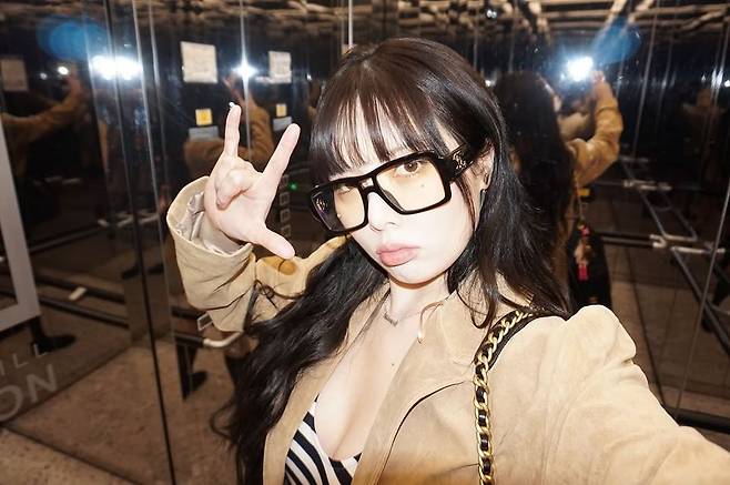 현아가 또 한 번 감각적인 셀카 한 장으로 시선을 강탈했다. 최근 인스타그램에 올라온 사진 속 현아는 엘리베이터 내부의 거울 벽을 배경으로 독보적인 존재감을 드러냈다. 특히 강조된 건 그녀의 선글라스 스타일. 큼지막한 스퀘어 프레임에 반투명 브라운 렌즈가 들어간 안경은 클래식하면서도 레트로한 무드를 완성해낸다.
