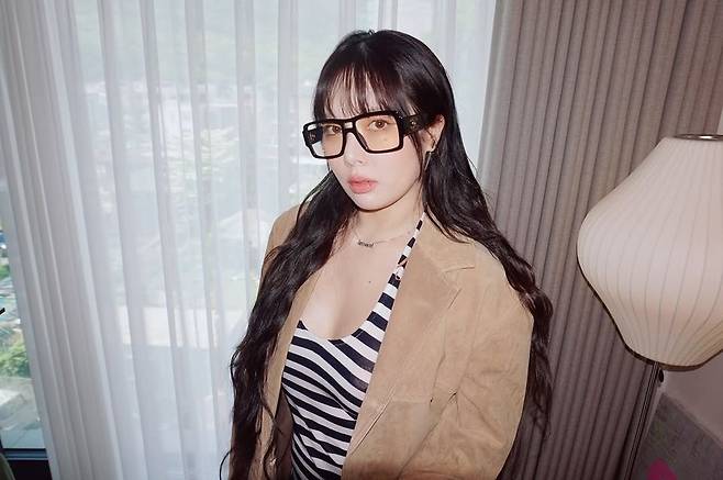 #현아 #현아패션 #현아안경룩 #레트로안경 #뉴트로스타일 #스웨이드재킷 #빅프레임안경 #스트라이프브라탑 #셀카장인 #거울샷 #스타패션 #하이엔드룩 #Y2K스타일
