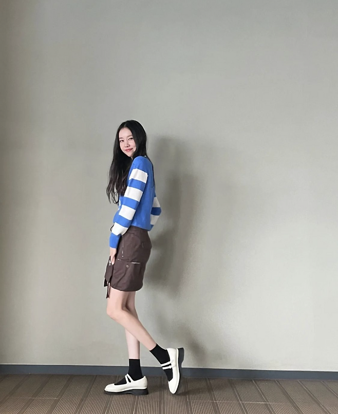 메리제인 슈즈로 발랄하고 상큼한 매력을 표현한 모습이네요 :)