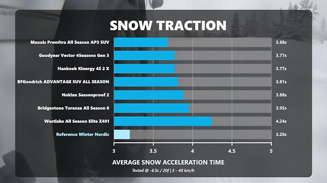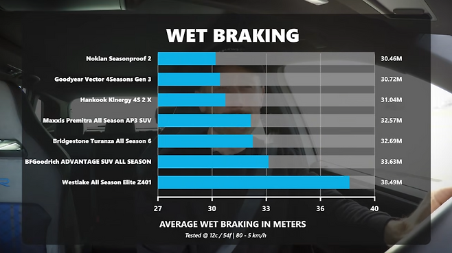 이와 관련해 외신 잘롭닉은 전문가와 함께 핀란드의 노키안(Nokian) 타이어를 리뷰하면서 동시에 글로벌 시장에서 유명한 사계절 타이어 여섯 종류를 비교 시험했다. 그중에는 국산 타이어도 있다.