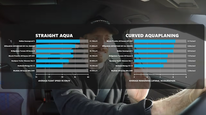 이와 관련해 외신 잘롭닉은 전문가와 함께 핀란드의 노키안(Nokian) 타이어를 리뷰하면서 동시에 글로벌 시장에서 유명한 사계절 타이어 여섯 종류를 비교 시험했다. 그중에는 국산 타이어도 있다.