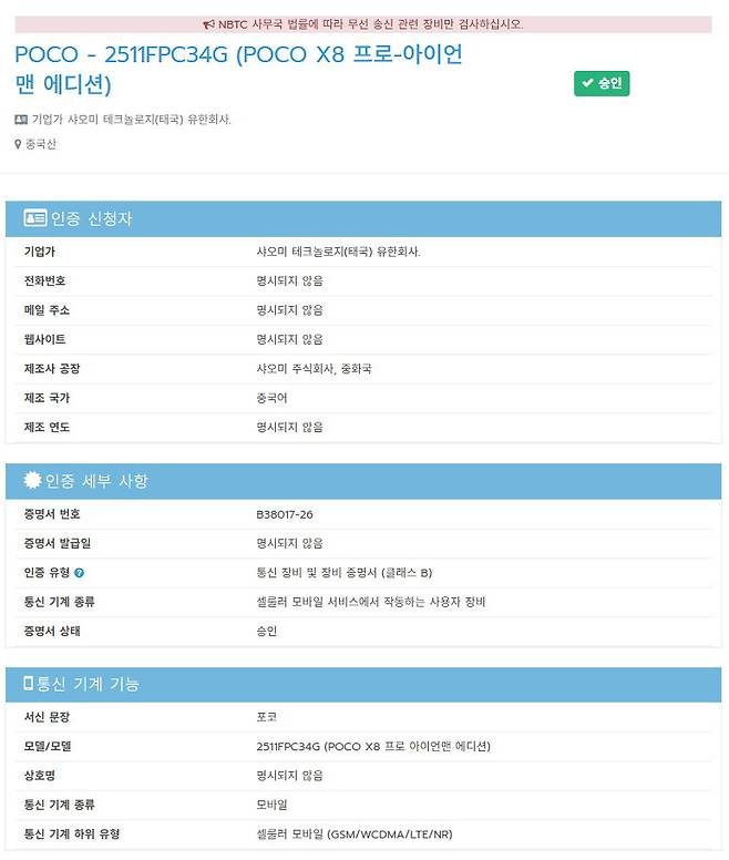 이번 정보는 태국 국가방송통신위원회인 NBTC 인증 목록에서 포착됐는데요. 인증된 모델은 ‘아이언맨 에디션’이며, 모델 번호는 2511FPC34G로 확인됐습니다. 외형에 대한 구체적인 정보는 공개되지 않았지만, 글로벌 판매를 위한 인증이라는 점에서 출시 자체는 사실상 확정으로 보입니다.