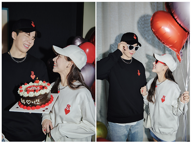 하트 볼캡까지 함께 코디해