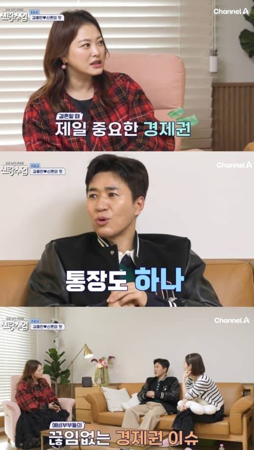 이어 심진화는 "제일 중요한 것은 경제적인 것이다. 합칠 것인지 따로 쓸 건지"라고 경제권을 언급하자 김종민은 "그건 좀 예민한 문제더라"라고 말했습니다.