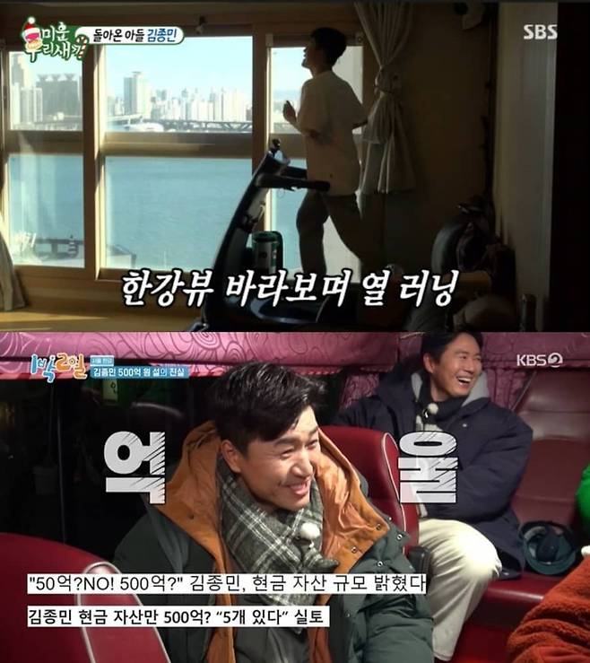 이어 김종민은 2023년 한 방송에서 "현금성 자산만 5개 있다. 50억은 아니다"라고 밝혀 재산만 500억원이라는 소문이 돌기도 했습니다.