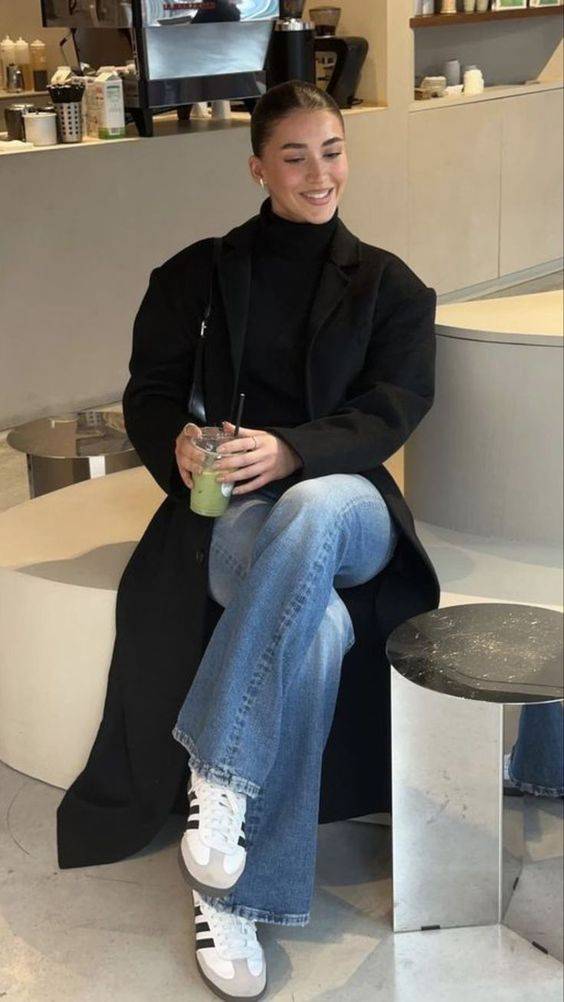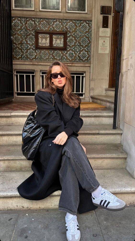 블랙 롱코트 + 로퍼는 실패 없는 조합이기도 하죠.