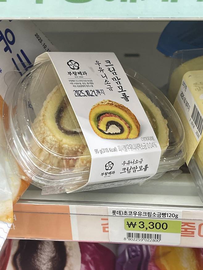세븐일레븐신상 부창제과 우유니소금 맘모스롤은 우유니소금을 사용하는 부창제과의 시그니처 메뉴를 편의점용으로 만든 디저트에요.