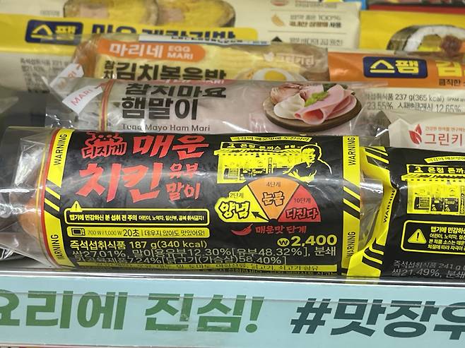 세븐일레븐과 온정돈까스가 협업해 출시한 양념 치킨 유부말이 간편식 제품이으로 맵찔이분들은 피하세요.
