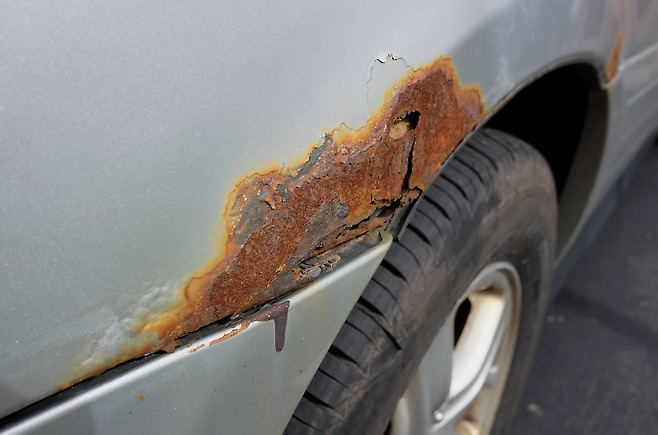 도장면까지 손상이 발생한 경우에서 그냥 방치를 할 경우 본판이 드러난 상태에서 산소와 반응이 이루어지게 되고 그렇게 녹이 발생하기 시작을 합니다. 녹이 발생을 하게 되면 시간이 지나면 지날수록 부식이 점점 커지게 되고 결국 넓어진 부위가 해결이 되지 않는다면 교환을 해야 하는 상황이 발생하기도 합니다.