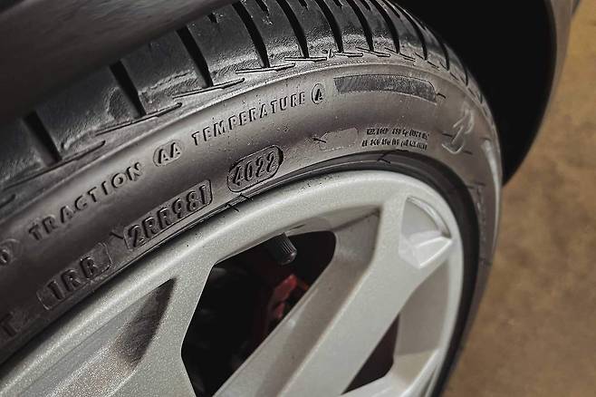 타이어 측면에는 ‘2424’ 같은 4자리 번호가 있는데, 이는 2024년도 24번째 주에 생산됨을 뜻한다. 앞의 2자리는 생산 주차(Week), 뒤의 2자리는 생산 연도(Year)를 표기한다. ‘0920’이라면 2020년 9주차 생산임을 의미한다. 제조일자가 오래된 타이어는 경화 등으로 안전성·내구성이 떨어질 수 있으니, 구매·교체 시 반드시 확인해야 한다.