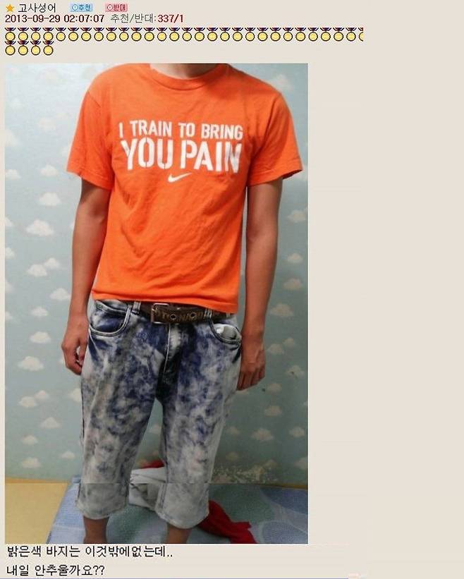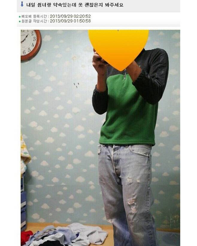 글쓴이는 "내일 썸녀랑 약속 있는데, 옷 괜찮은지 봐주세요" 라며, 자신의 패션에 대한 고민글을 올렸고, 이를 보며 네티즌들의 지속적인 패션 피드백이 이어졌는데요.