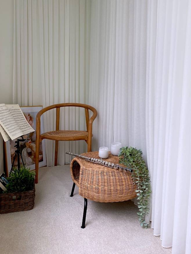반대쪽 공간은 저의 작은 취미 공간이에요. 어릴 때부터 악기 배우기를 좋아해서 틈틈이 플릇연습을 해요.