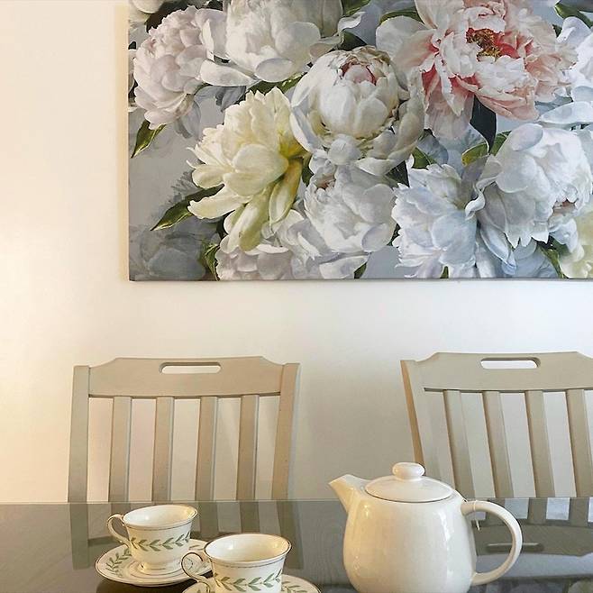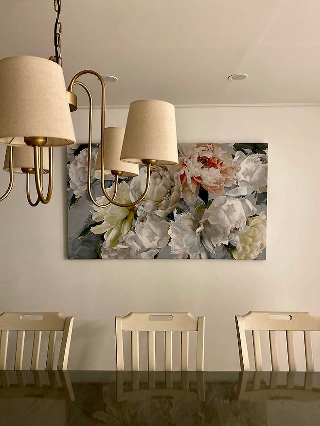거실만큼 많은 시간을 보내는 공간이에요. 플로리스트였던 다둥맘은 여기에도 플라워액자를 설치했어요.