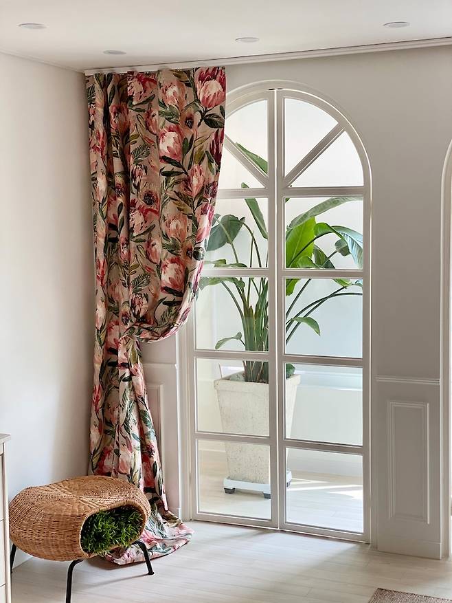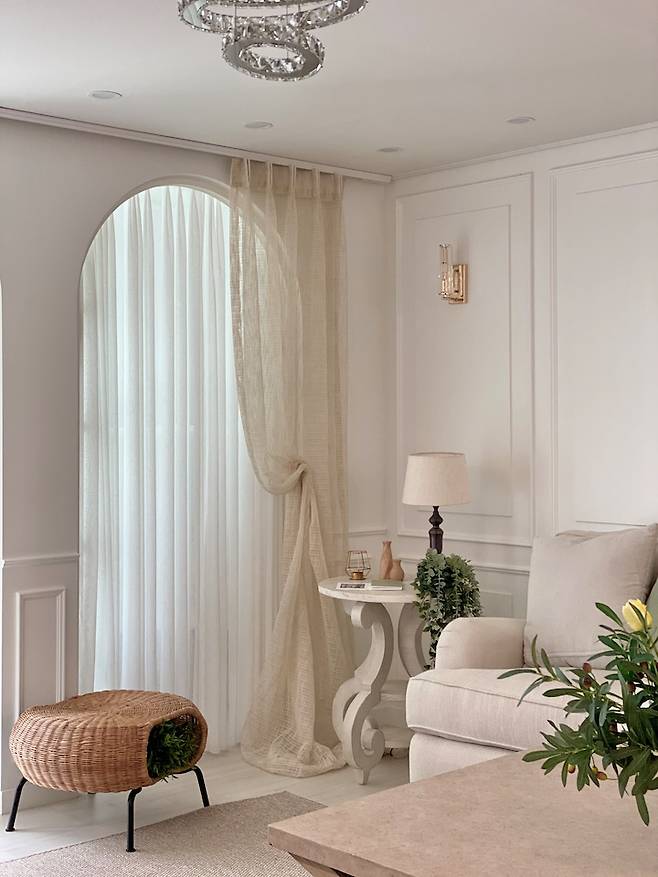 아치문 안쪽으로도 커튼레일을 설치하고 레일이 보이지 않도록 몰딩을 붙여주었어요.
