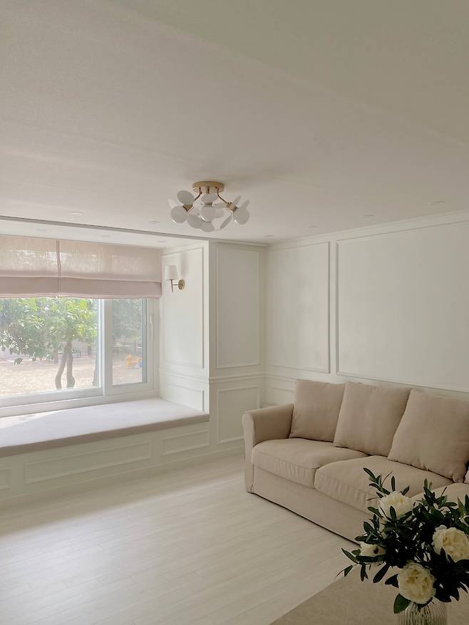 이사 온 지 몇 달 되지 않아 아직 꾸며야 할 곳이 좀 남았지만, 저희 집을 소개해드리게 되어서 너무 기쁘네요. 이 집을 선택하게 된 이유는 모든 창에서 나무를 볼 수 있고. 집 바로 앞에 모래 놀이터가 있고, 심지어 벚꽃까지 ㅎㅎ 그리고 아이들이 마음껏 뛰어놀 수 있는 1층이라는 점이에요. 오래된 아파트라서 전체 리모델링으로 진행했어요. 가장 신경 써서 디자인한 곳은 거실이에요. 다 확장하는 것보다는 베란다 부분이 약간 있으면 좋겠다고 생각했어요. 업체와 미팅하기 전에 주로 핀터레스트를 이용하여 외국의 많은 집들을 살펴보았어요. 자료를 많이 찾았지만 모두 저희집에 실현 가능한 것이 아니라서 포기해야 하는 부분도 있었어요.