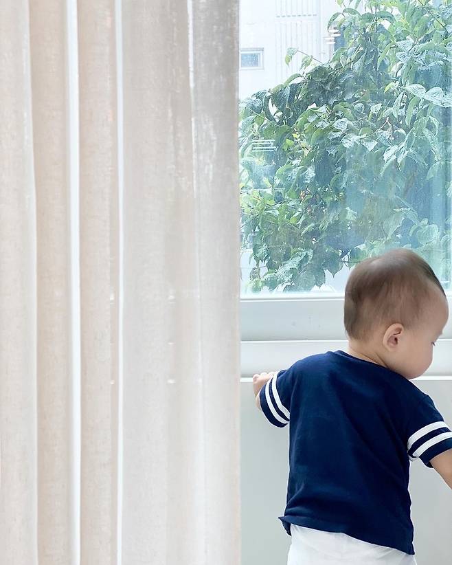 우리 셋째는 창가에 서서 밖에 나무 쳐다보는 걸 좋아해요.