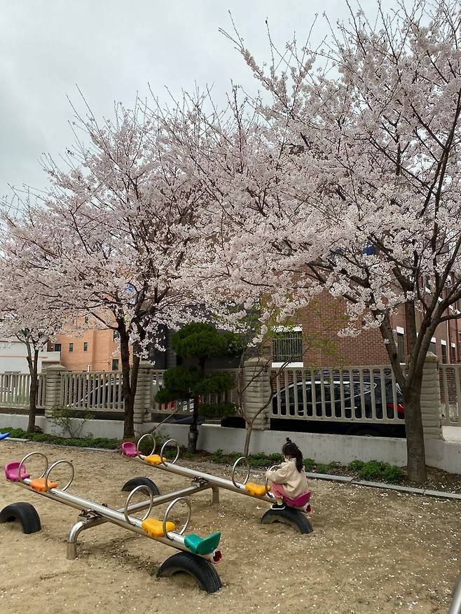 벚꽃이 흩날리는 집 앞 놀이터가 있어서 아이 셋에게 너무 좋은 집이에요.