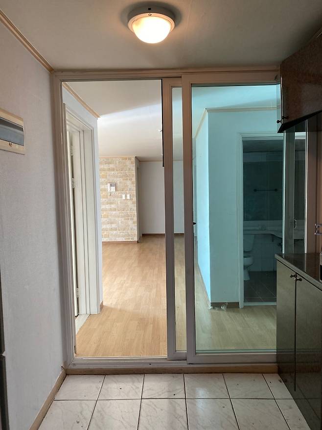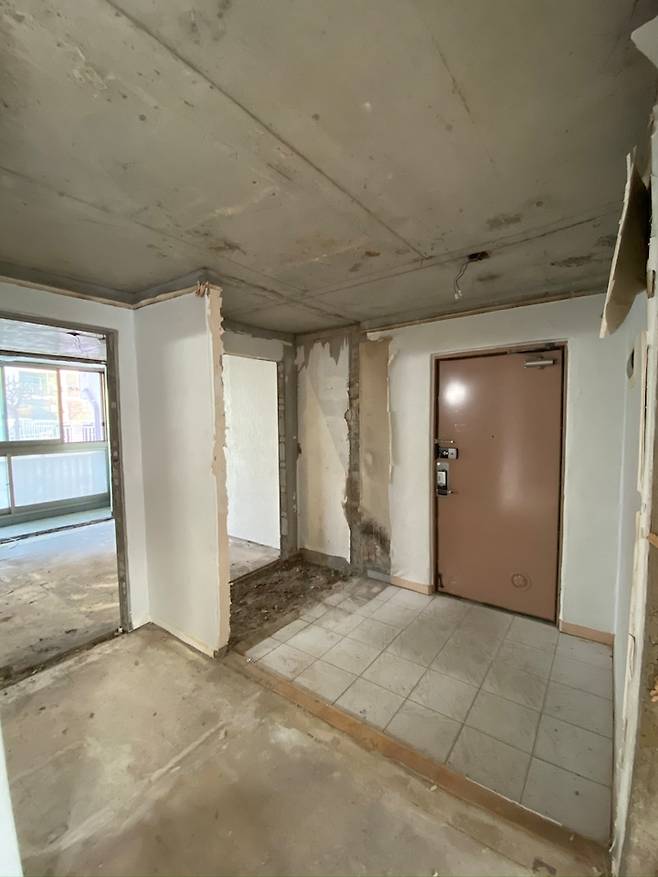 공사 전 모습이에요. 천장도 약간 내려앉아 있고 베란다도 확장되어있지 않은 집의 형태였어요.