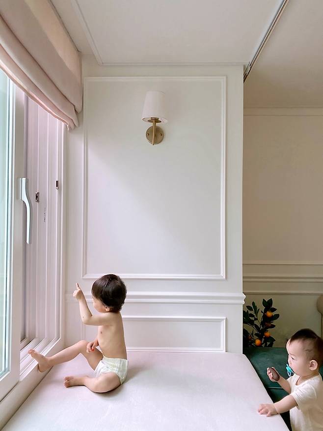 아이들 방도 확장인듯 아닌듯하게 공간 분리를 해보았어요. 중간벽 창문 앞에는 예쁜 소품을 놓을 수 있는 공간이 있어서 너무 좋아요.